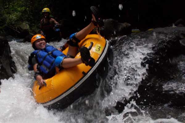 Bali river tubing is one of Bali water activities that many also favored and booked by the tourists who visit Bali Island or the island of gods. Bali river tubing is operated in Penet river which located in Tanah Wuk village, Sangeh, Ubud, Bali. The trip will be started at Br. Jemeng Samuan, Carang Sari village and finish at Tanah Wuk, Sangeh. This river has beautiful natural surroundings, wild rapid, and countryside environtment. When you do this activities you will experience an incredible adventure, floating and riding the river rapids during 3.5 km and takes approximately 1.5 - 2 hours. Beautiful nature, lush green trees, floating on the river, wild waters, and unexpected waterfalls make your adventure fun, memorable, and adventurous. Each person will use comfortable private tubing on this adventure, elbow protection, knee pads and you will be led by professional and well trained guide. When you reach ending point you will get invitation to observe beautiful horizontal natural cave. Then, we will take you to the restaurant to shower, change cloth and enjoy the lunch at Lembah Penet Restaurant with offering a beautiful panorama view and delicious food.....